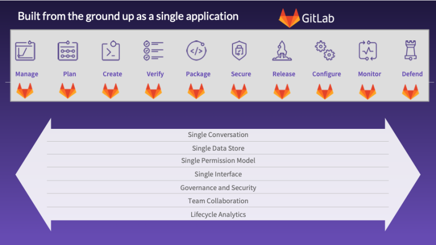 GitLab drives radically faster cycle times by helping DevOps teams achieve higher levels of efficiency across all stages of the lifecycle. Concurrent DevOps makes it possible for Product, Development, QA, Security, and Operations teams to work simultaneously instead of waiting for handoffs. Teams can work concurrently and review changes together before pushing to production. And everyone can contribute to a single conversation across every stage. Only GitLab eliminates the need to configure and integrate multiple tools for each project manually. Teams can start immediately and work concurrently to compress time across every stage of the DevOps lifecycle radically.